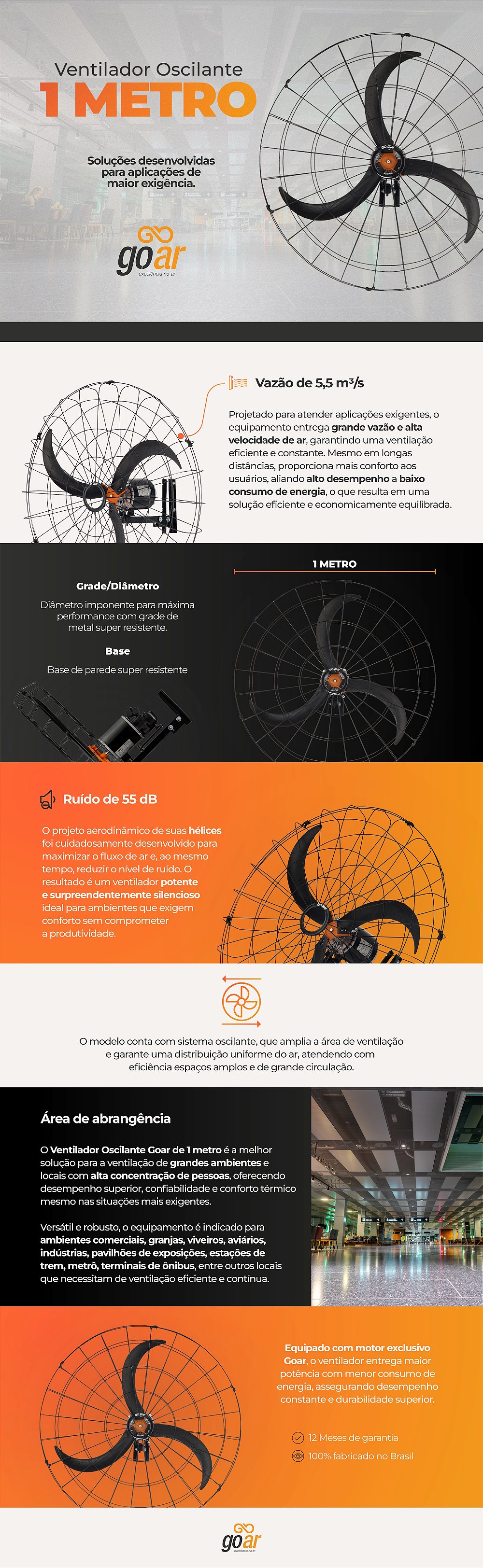 Produto 100% fabricado no Brasil, com garantia de 12 meses, assegurando a eficiência e qualidade do Ventilador Oscilante de 1 metro.